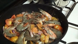 Kapag naigisa nyo na ang mga ito...Haluin at Ihulog ang Fresh na hipon ,iluto naten dito kasama ng mga ginisang spices..lagyan ng paminta at cayenne pepper..At lagyan ng 2 tbsp na Miso ..